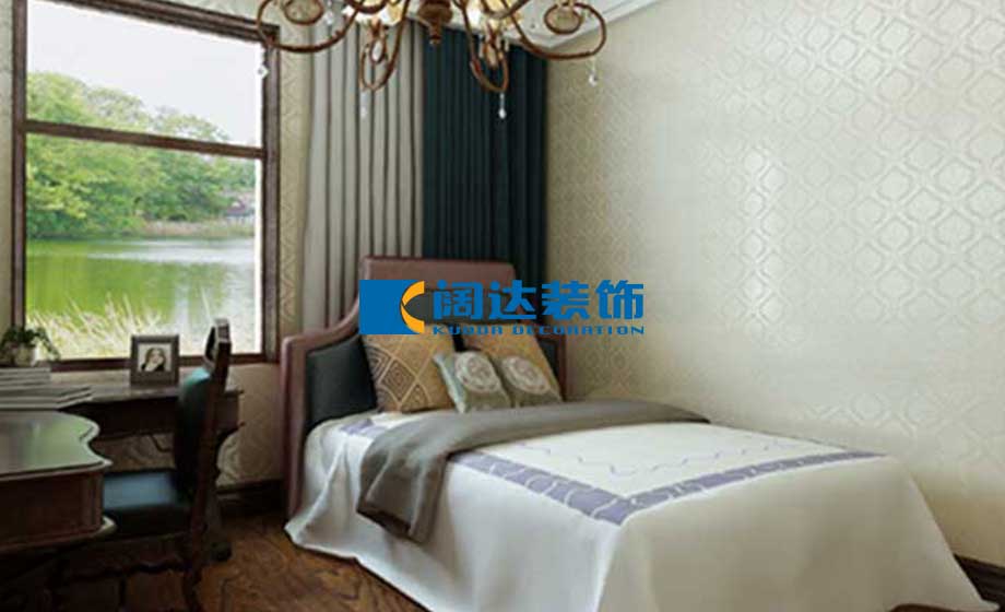 次臥室:次臥室為男孩房,墻面采用藍色豎條壁紙顯得活潑可愛。