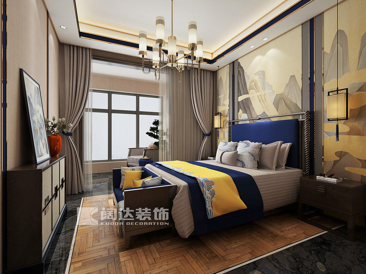 此案例沒有繁瑣的裝飾,局部色彩的點綴和金屬扣線的裝飾使中式風(fēng)格更具有現(xiàn)代靈動的感覺。整體空間闡釋這生活的哲思,回歸內(nèi)心的平靜,去尋找屬于自己的靈魂,讓設(shè)計蛻變?yōu)橛袦囟鹊纳钏囆g(shù)。