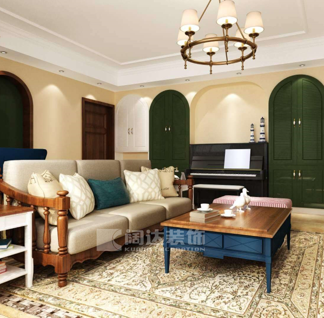 清新的美式田園風崇尚不刻板,在色彩運用上混搭跳色也是一大特色,隨意搭配上流暢的線條。沒有對錯,有的是精神和靈魂。